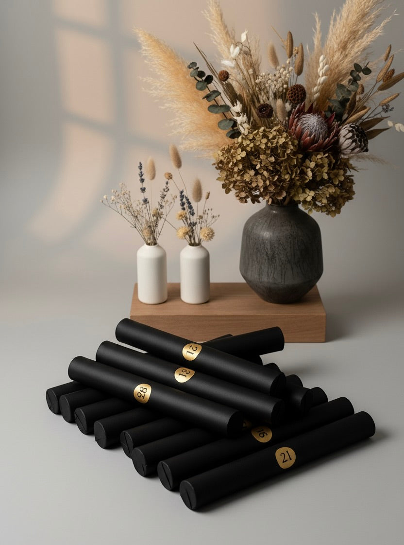 Erlebe den Advent in seiner schönsten, ruhigsten Form: Unser handgefertigter Trockenblumen Adventskalender überrascht dich an 24 Tagen mit 21 ausgewählten Trockenblumen und drei stilvollen Vasen, die im Dezember nach und nach zum Vorschein kommen. So entstehen drei einzigartige Mini-Sträuße, die perfekt zusammenpassen und dein Zuhause elegant dekorieren.